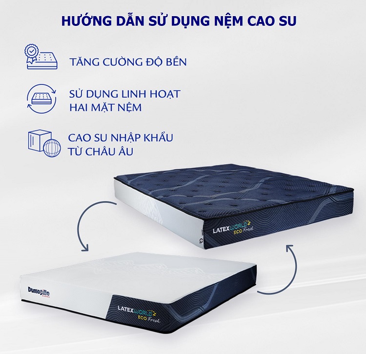 - Nệm cao su cần được bọc trong áo nệm và có kích thước phù hợp. Nên tham vấn trực tiếp nhân viên bán hàng về cách mặc áo nệm nhằm hạn chế biến dạng hoặc xước tại các góc và cạnh nệm.